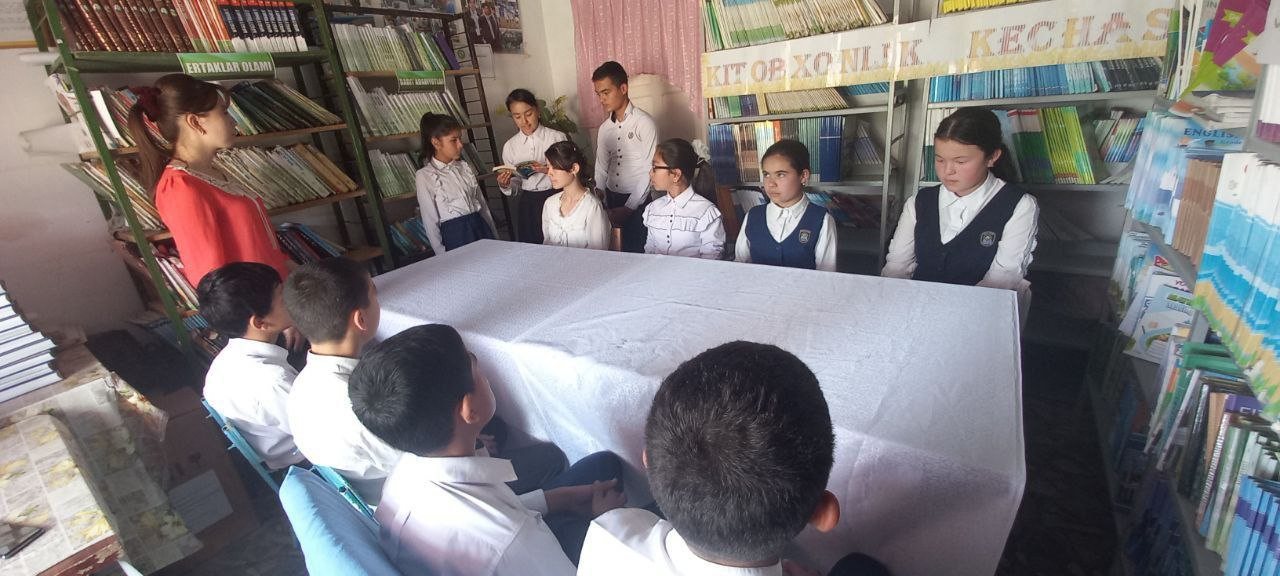 Òzbekiston Respublikasi Prezidentining Yoshlar ma'naviyatini yuksaltirish va ularning bòsh vaqtlarini mazmunli tashkil etish bòyicha Hazorasp tumanidagi 37-son umumiy òrta ta'lim maktabida 11-may kuni òtkazilgan 5 ta muhim tashabbusning 1-yònalishi bòyicha Yosh adabiyotshunoslar Abdulla Qodiriy ijodiga mansub "Mehrobdan chayon"asarining muhokamasidan foto lavhalar.
