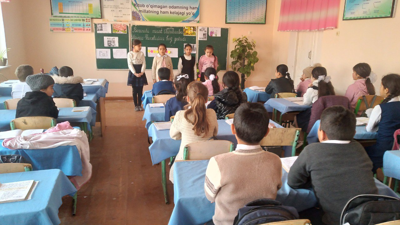 Hazarasp tumanidagi 37-son maktabining boshlanģich ta'lim o'qituvchisi Jumaniyozova Shahnozaning 4-A sinf o'quvchilari ishtirokida o'tkazgan ''Yaxshidan bog' qoladi"mavzusidagi ochiq darsidan fotolavhalar